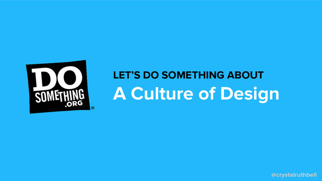 Creative Lead Crystal Ruth Bell gives a short introduction to the successful framework DoSomething.org has built to prioritize design organizationally and foster design / front-end co-creation of the site's style guide.