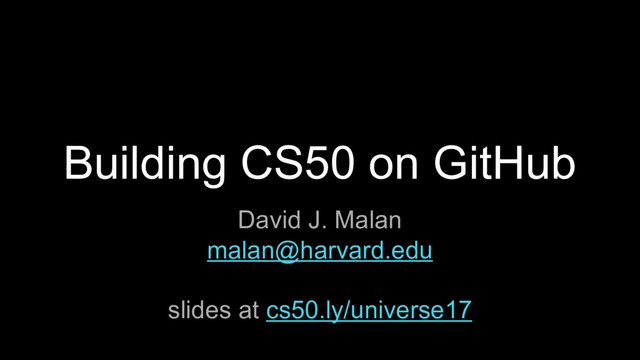 • submit50 at github.com/cs50/submit50 • check50 at github.com/cs50/check50 • Slides at cs50.ly/universe17