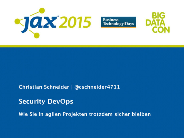 Diese Session zeigt Ihnen, welche Automatisierungsoptionen zur Überwachung bestimmter Sicherheitsaspekte in der agilen Softwareentwicklung bestehen. Ausgehend von dem etablierten DevOps-Konzept, mit dem im Übergang von Entwicklung zu Betrieb Prozesse automatisiert und verzahnt werden, wird mit "Security-DevOps" dieser Antrieb aufgegriffen und auf die Absicherung von Anwendungen gegen Hackerangriffe übertragen.