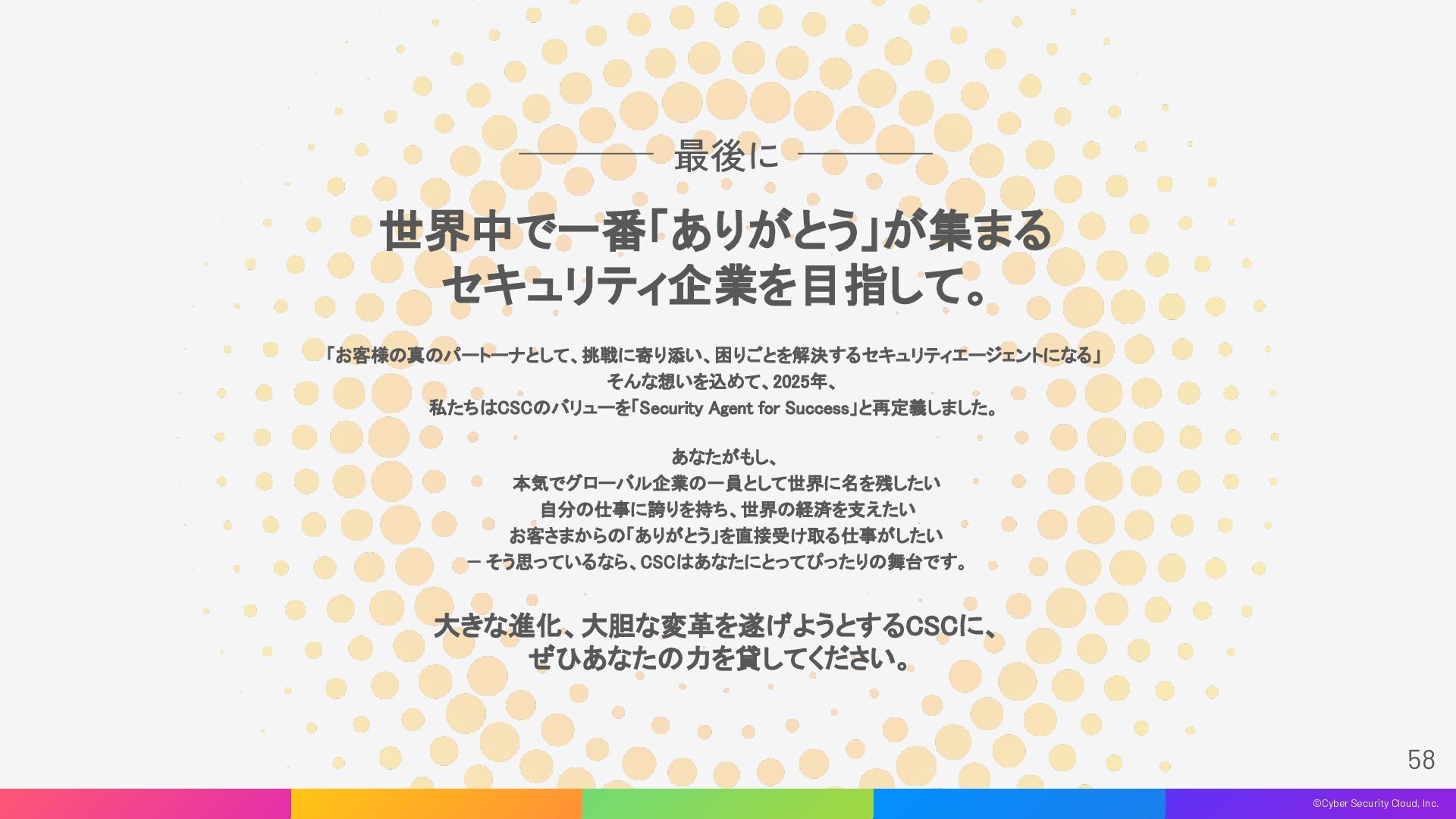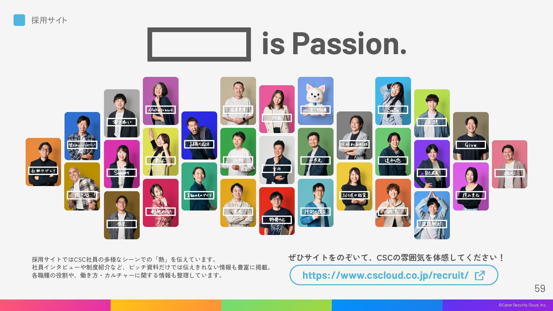 セキュリティ連盟」 「WafCharm Night」 「誰に尋ねたらよいか分からない」をなくすことを目的 とした、約2,000名が参加するサイバーセキュリティに 特化したコミュニティ。「見る」「尋ねる」「回答する」全 ての方が学べるオンラインコミュニケーションスペー スとして、参加者同士の交流、及びスキルアップなど を目的とした各種イベントを展開。サイバーセキュリ ティ人材のスキル向上に寄与しています。 「サイバー攻撃による深刻な被害ゼロ」をVisionに掲 げ、約300の事業法人が集まるコミュニティ。経営者 を中心とした「法人」をメンバーとして、サイバーセ キュリティ啓発を目的とした活動を展開中。政府・中 央省庁・各種業界団体との連携を通じて「DX with Cybersecurity」の実現を目指しています。 当社プロダクト「WafCharm」ご利用いただいている ユーザー様に向け、ユースケース・ベストプラクティ スの共有、利用方法に関する疑問を語り合うイベン トを定期的に開催。