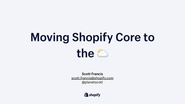 This talk covers Shopify's move from a DC-based infrastructure to a Kubernetes cloud-based architecture.