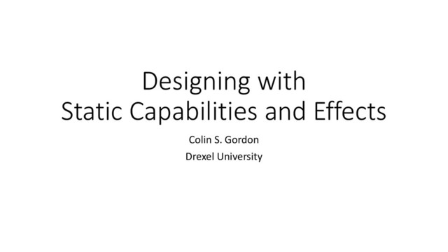 system, NoHeapAccess ≤ HeapAccess • Г, : , : ⊢ = ∶ 𝑢𝑢𝑢𝑢𝑢𝑢 | • This super-simple effect system could be used to parallelize “x=y” The simplicity of capabilities comes from conflating use and mention: Can’t use what you can’t even mention