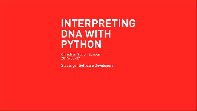 These are the slides from a 10-minute lightning talk I did on interpreting DNA with Python. I talked about how I built my own 23andMe parser, which is very fast, and then how one can infer simple phenotypes from genotypes using Python.