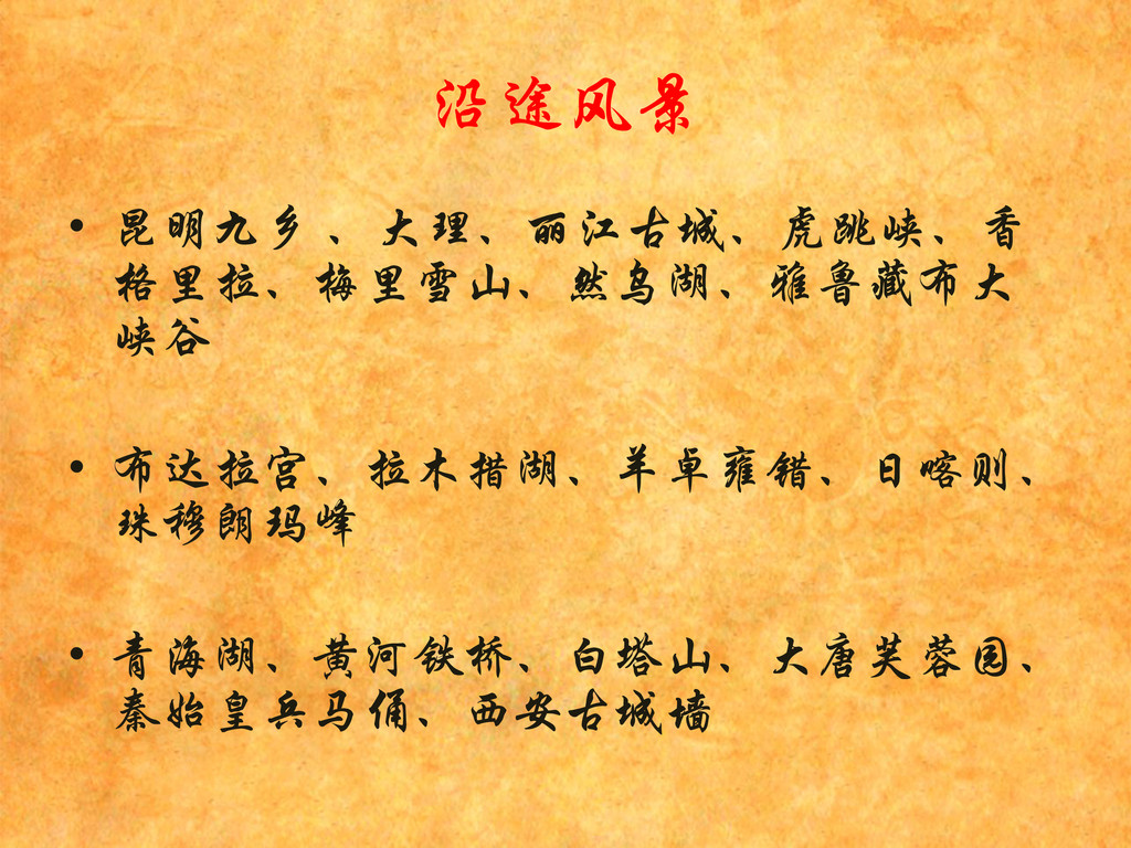 青海湖、黄河铁桥、白塔山、大唐芙蓉园、 秦始皇兵马俑、西安古城墙