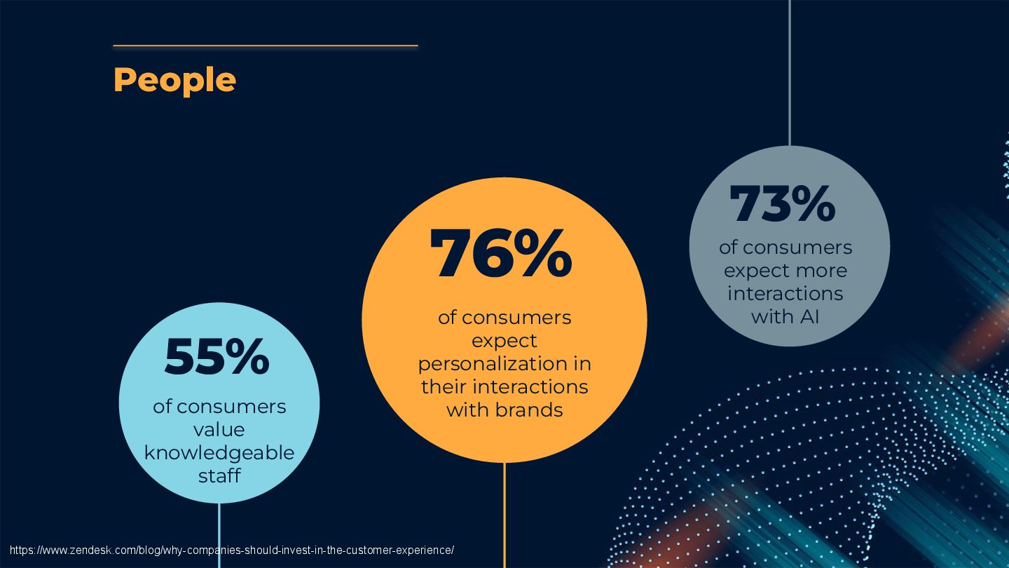 expect personalization in their interactions with brands 73% of consumers expect more interactions with AI https://www.zendesk.com/blog/why-companies-should-invest-in-the-customer-experience/