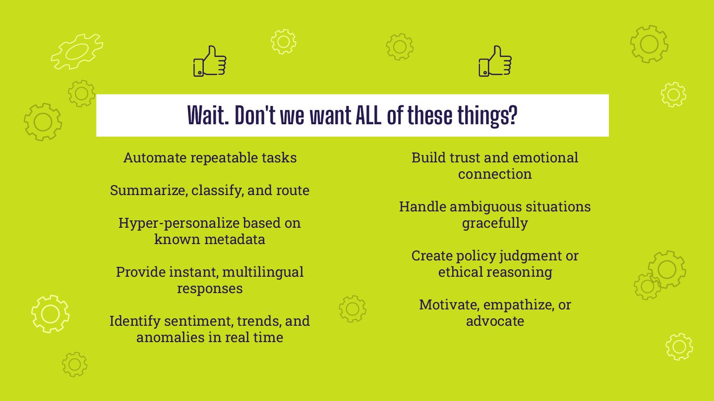 In a world racing toward automation, what’s next for your CX team? Let's dive into what AI can—and can’t—do, why human roles still matter, and how to future-proof your workforce. You’ll get a practical take on evaluating AI agents (plus why the term “Agentic” needs to go), and leave with clear, actionable ideas for navigating the shifting balance between tech and talent. If you’re responsible for navigating the tension between technological innovation and human connection, this talk is your roadmap to building a CX workforce that’s not only resilient, but ready for what’s next.