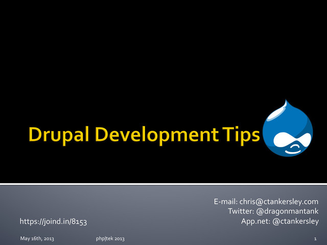 ¡ Lots of projects no one uses, and a few that some do § TL;DR https://github.com/dragonmantank ¡ Heavy Drupal Development for 2 years May 16th, 2013 php|tek 2013 2