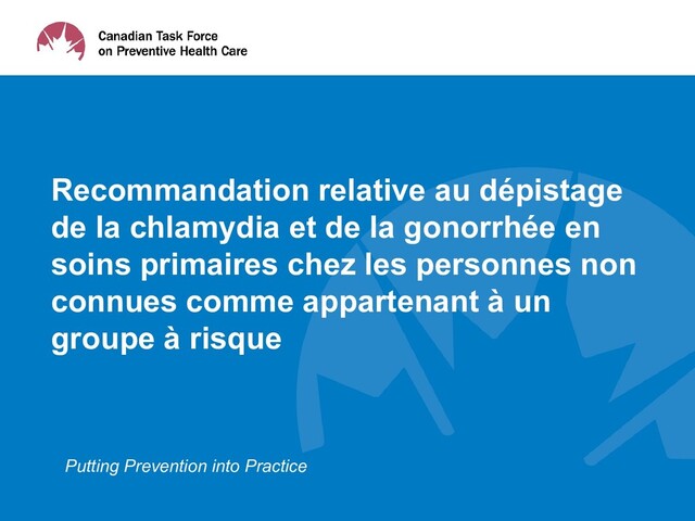 Recommandation relative au dépistage de la chlamydia et de la gonorrhée en soins primaires chez les personnes non connues comme appartenant à un groupe à risque (2021)