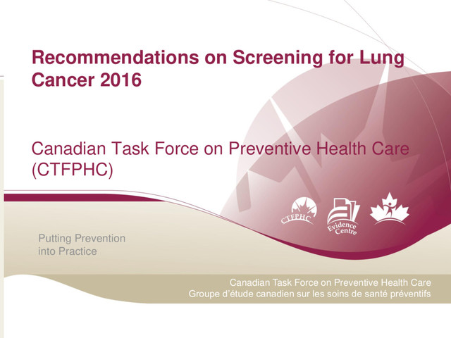 Care Groupe d’étude canadien sur les soins de santé préventifs Recommendations on Screening for Lung Cancer 2016 Canadian Task Force on Preventive Health Care (CTFPHC)