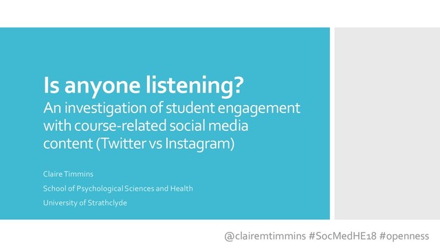 A comparison of the use of Twitter and Instagram as a tool to engage students with institutional social media. Findings of a week-long investigation of what students engage with. Results suggest that Instagram is the preferred mode of engagement for SLT students at University of Strathclyde.