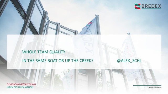 product owner, manager • A huge fan of working in agile teams • A whirlwind and a geek ▪ About my work: • Software development company in Germany called BREDEX • 120 people, 15 of whom are my testers ☺ − The rest are developers, architects, consultants, UX, ... • Focus on quality during development • Strong preference for agility @alex_schl