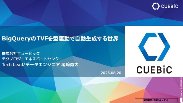 BigQueryのTVFのGoogle Colab上でTypeScriptの環境構築を行なって自動生成した事例です。 本資料は、8月20日に株式会社バックテック様主催の【オフライン開催】Mita.ts #7にてLTで発表させていただいたものになります。 https://mitats.connpass.com/event/360508/
