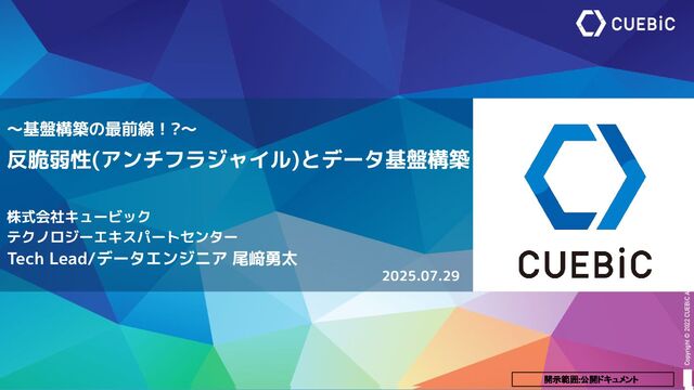 ナシーム・ニコラス・タレブ著のAntifragile(反脆弱性)の概要紹介とデータ基盤への思想適用を解説しています。本資料は2025年7月29日読書シェア会 vol.7で発表した内容になっています。 読書シェア会 vol.7 https://yumemi.connpass.com/event/359607/