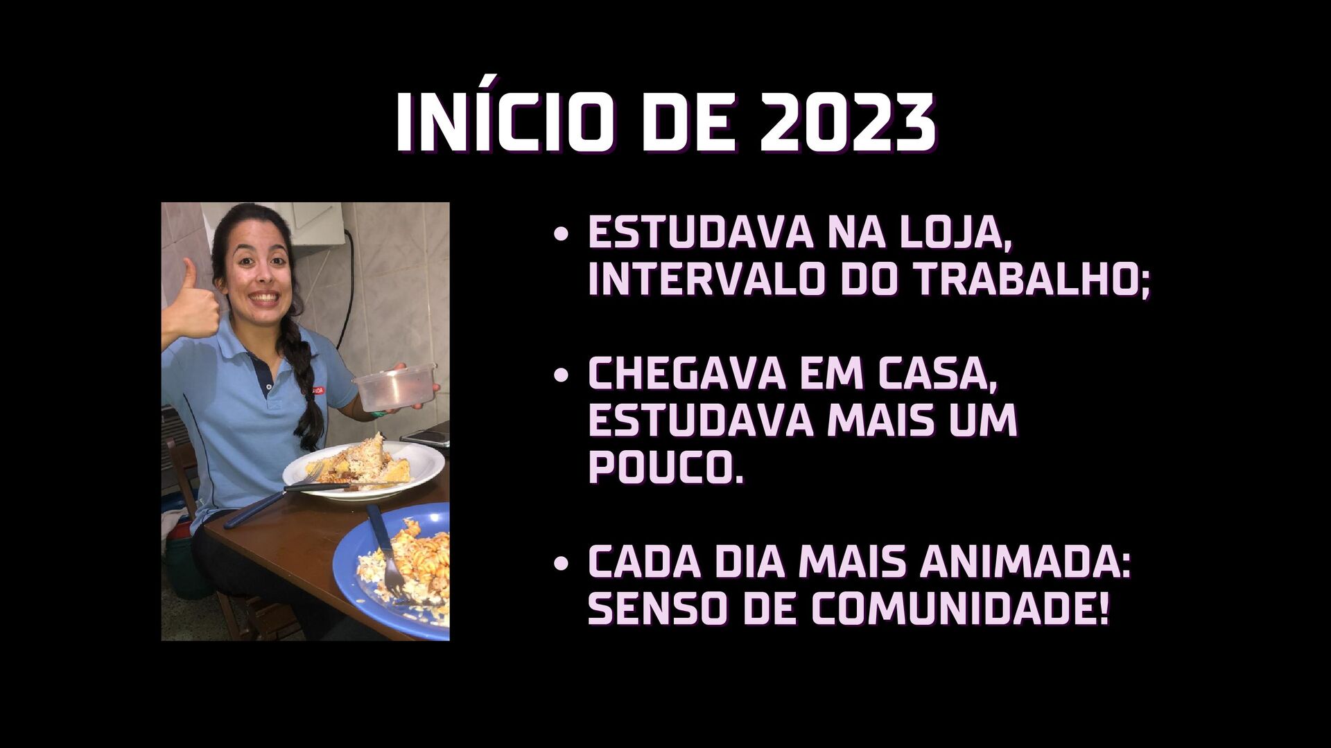 DO TRABALHO; CHEGAVA EM CASA, ESTUDAVA MAIS UM POUCO. CADA DIA MAIS ANIMADA: SENSO DE COMUNIDADE! ESTUDAVA NA LOJA, INTERVALO DO TRABALHO; CHEGAVA EM CASA, ESTUDAVA MAIS UM POUCO. CADA DIA MAIS ANIMADA: SENSO DE COMUNIDADE!