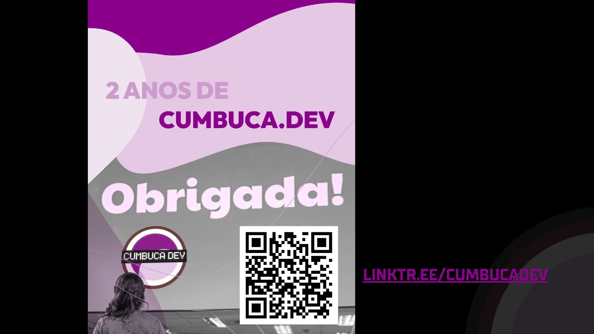mês, abrimos um espaço de Office Hours: um encontro aberto para conversar sobre o futuro do projeto em comunidade, tirar dúvidas, compartilhar ideias e apoiar quem quer começar a contribuir. Encontro da Comunidade Um espaço aberto e acolhedor, criado para trocar ideias, tirar dúvidas, compartilhar aprendizados e fortalecer nossa rede de colaboração em tecnologia. Organizamos, apresentamos e disponibilizamos os encontros para todas as pessoas, de forma gratuita. Saiba mais em cumbuca.dev AÇÕES PARA A COMUNIDADE SOBRE A CUMBUCA DEV