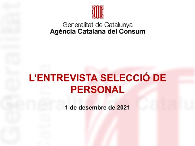 el gel” Com va, comentar aspectes generals del moment, de com ens en sortim amb el teletreball, etc. Primer contacte i coneixement de l’ACC Coneixes que és l’ACC i què fem? En què creus que consistirà la teva feina? Què t’ha impulsat a presentar la candidatura a aquest lloc de treball? Fase de desenvolupament Treball en equip Defineix què és per a tu el treball en equip? Explica una actuació de treball en equip viscuda a través de la qual s’hagi aconseguit un objectiu important? Quin va ser el teu rol? En quina mesura vas interactuar amb altres persones per assolir-lo? Flexibilitat i gestió del canvi Al llarg de la teva trajectòria professional, quin ha estat el canvi més significatiu a què has hagut de fer front? Com t’hi vas adaptar? Què destacaries com a aprenentatge en aquesta situació? 14