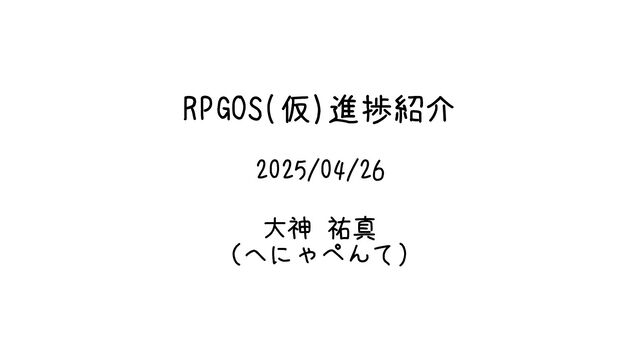 RPGOS(仮)進捗紹介 2025/04/26 大神 祐真 (へにゃぺんて)