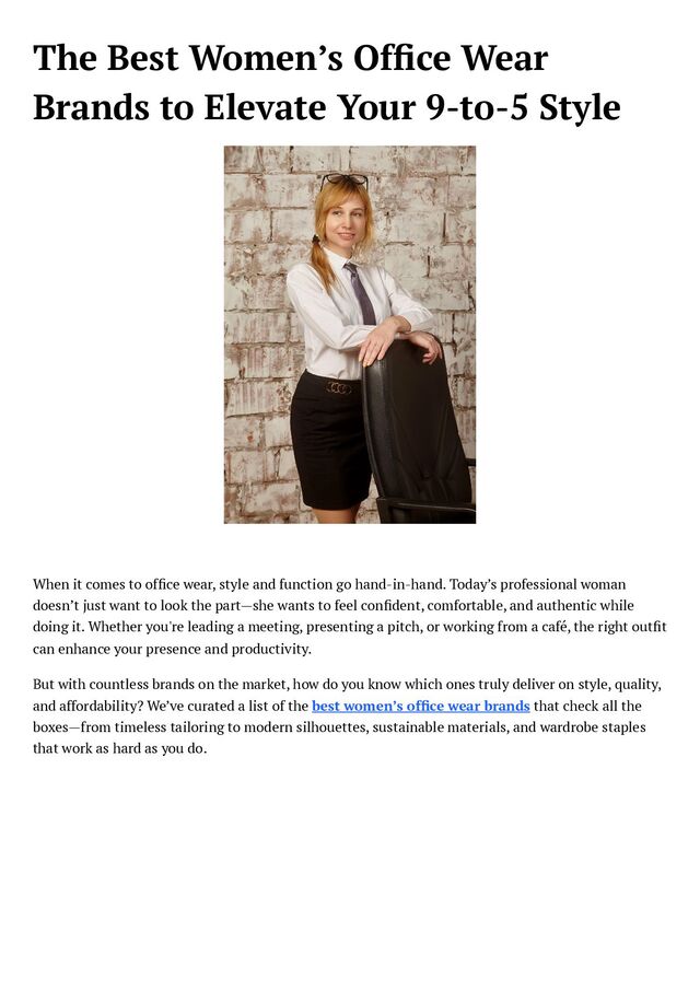 When it comes to office wear, style and function go hand-in-hand. Today’s professional woman doesn’t just want to look the part—she wants to feel confident, comfortable, and authentic while doing it. Whether you're leading a meeting, presenting a pitch, or working from a café, the right outfit can enhance your presence and productivity.