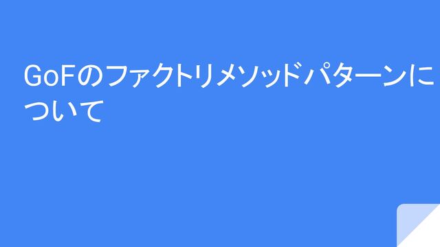 今日話すこと 1. GoFのデザインパターンとはなにか 2. 単純ファクトリパターンについて 3. ファクトリメソッドパターンについて 4. まとめ
