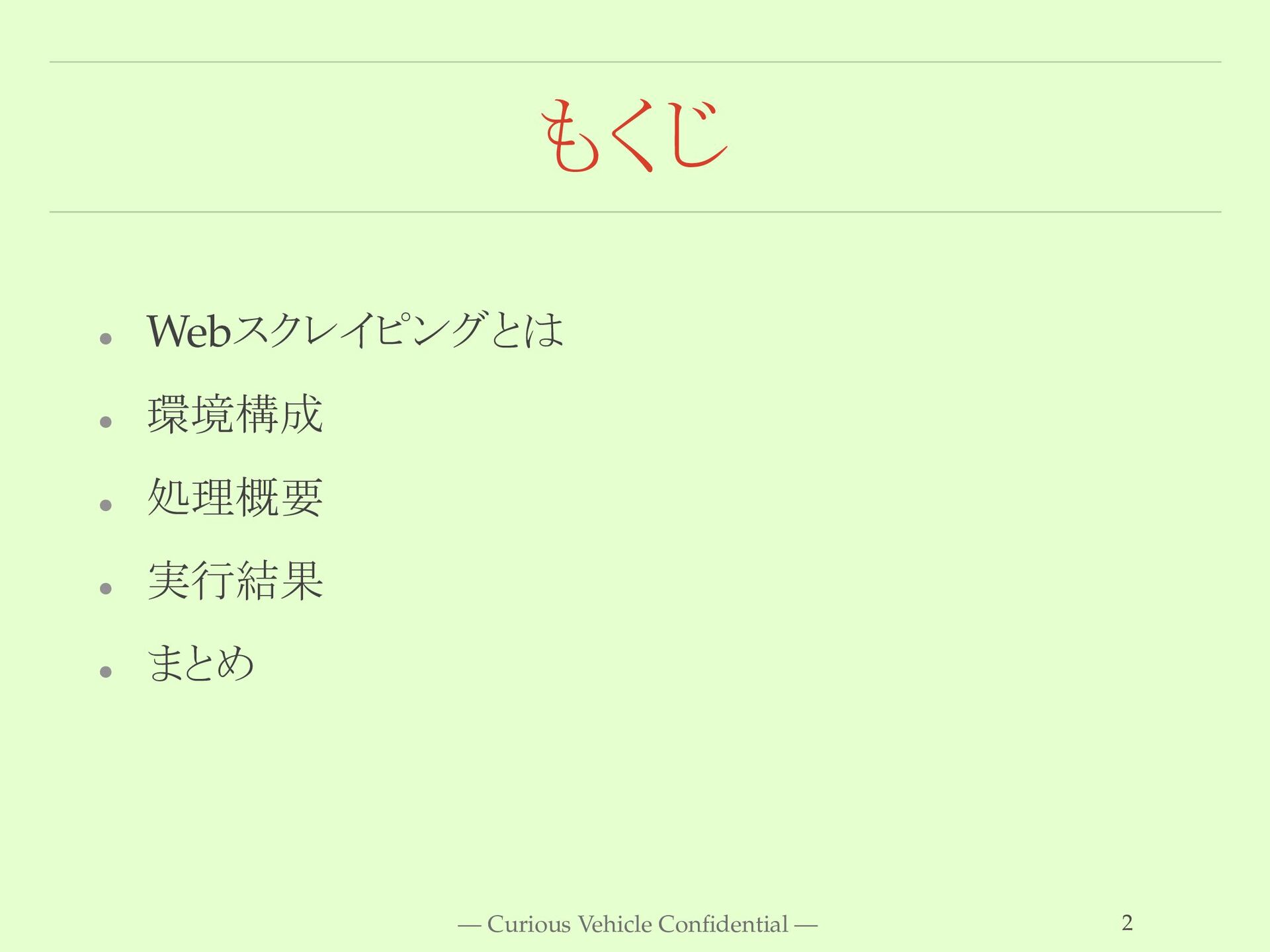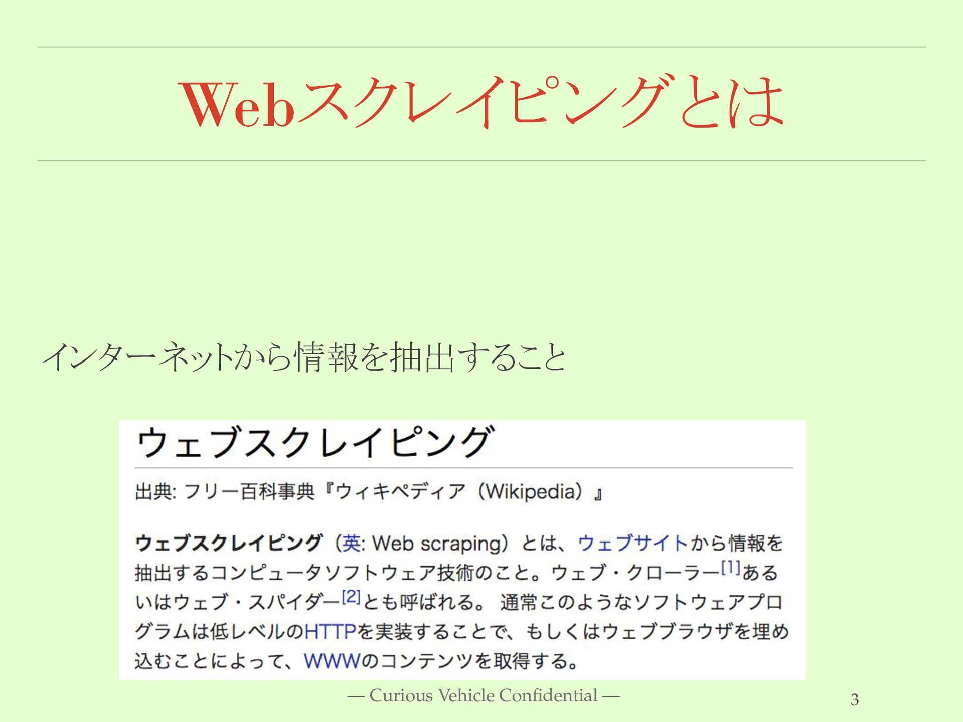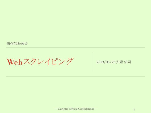 第46回勉強会 Webスクレイピング 2019/06/25 安齋 佑司 1 — Curious Vehicle Confidential