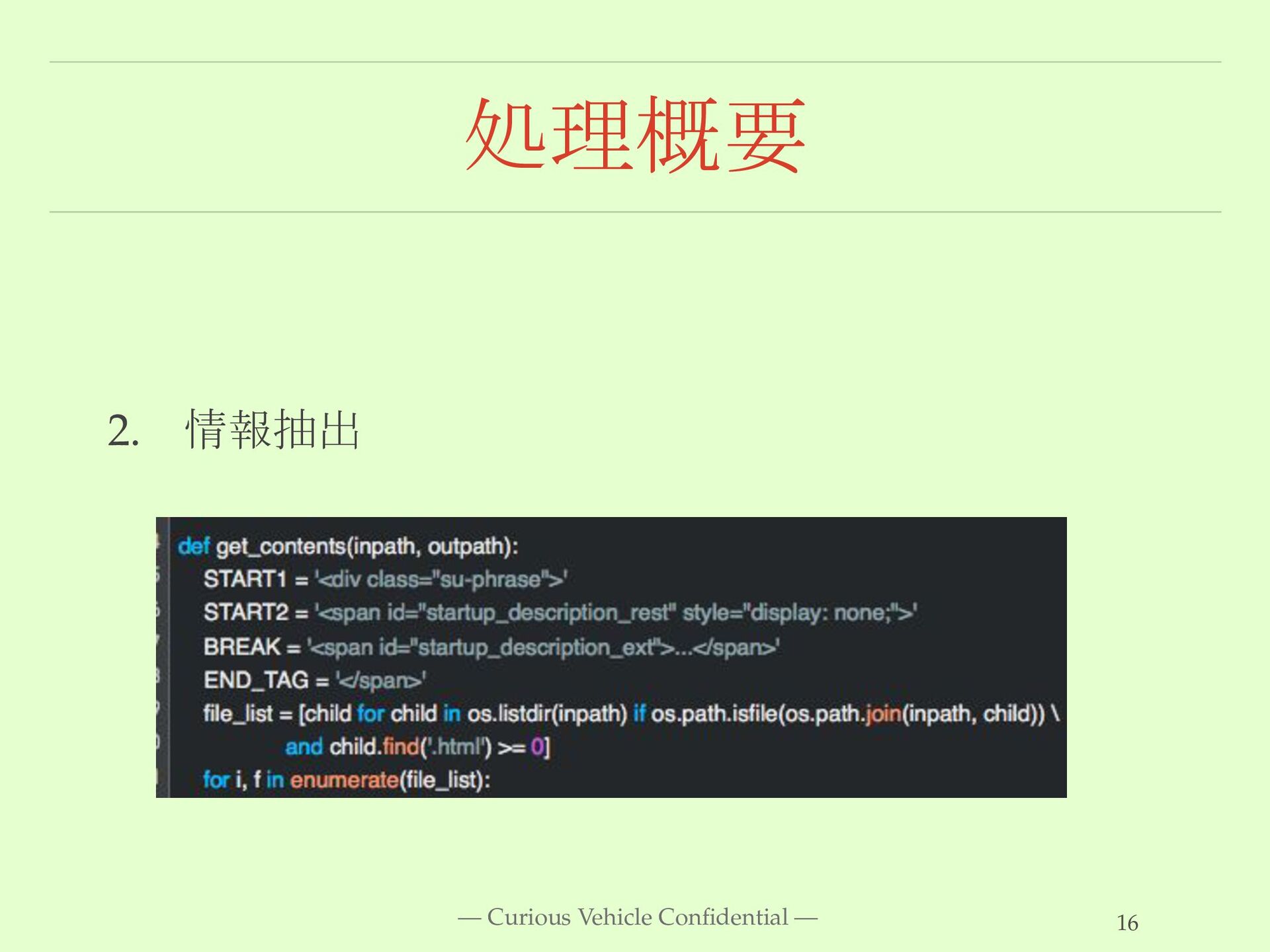 処理概要 2. 情報抽出 — Curious Vehicle Confidential — 16