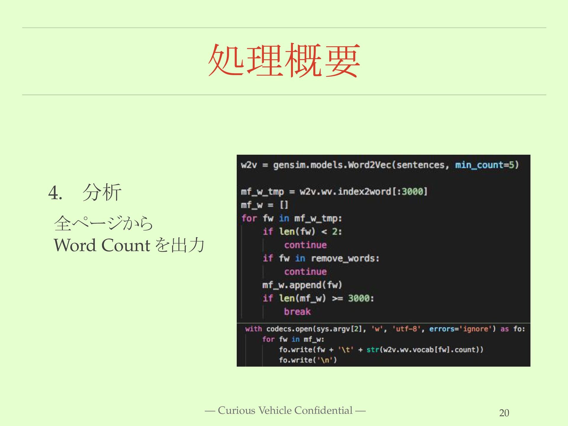 処理概要 4. 分析 — Curious Vehicle Confidential — 20 全ページから