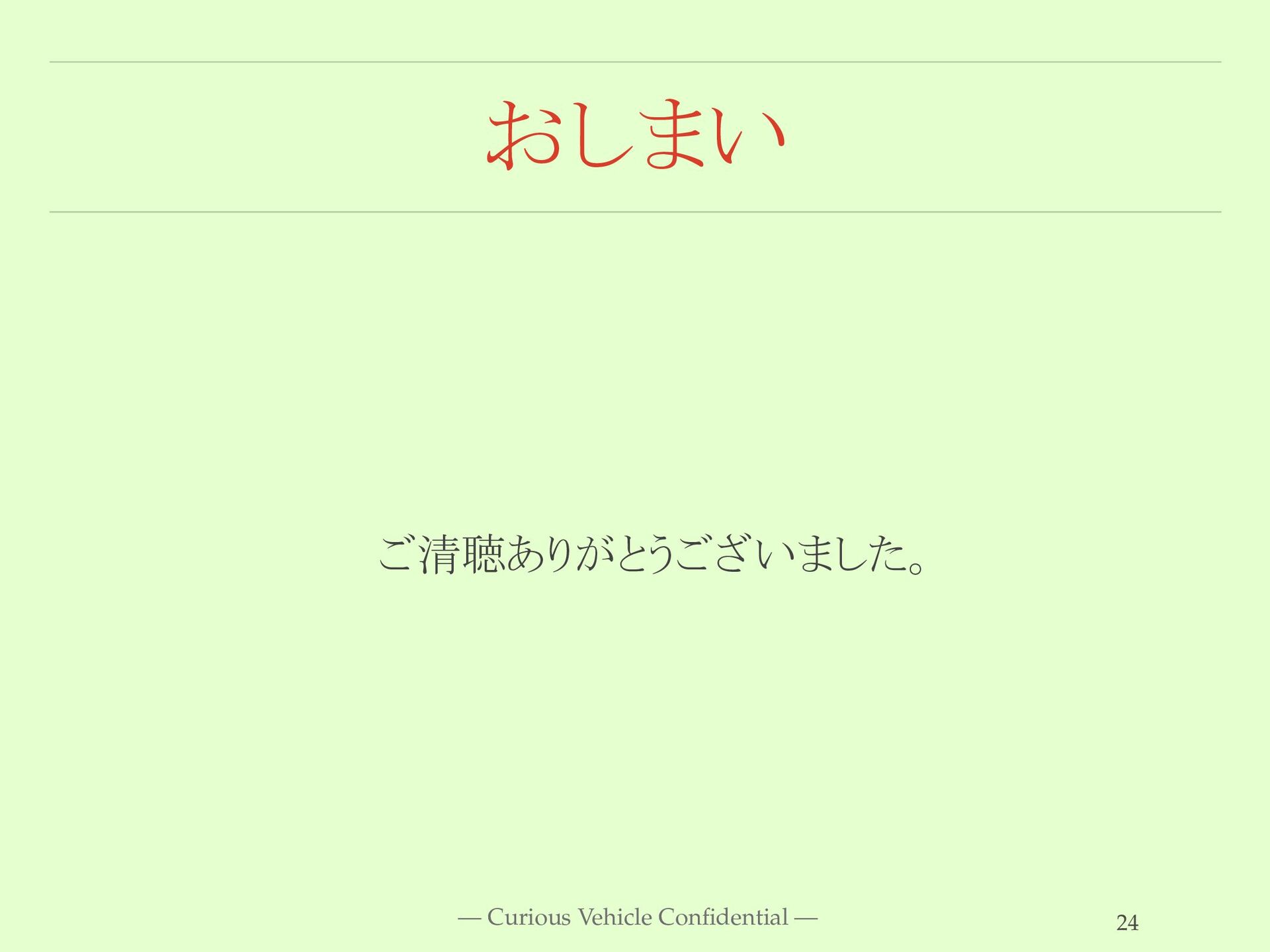おしまい ご清聴ありがとうございました。 — Curious Vehicle Confidential — 24