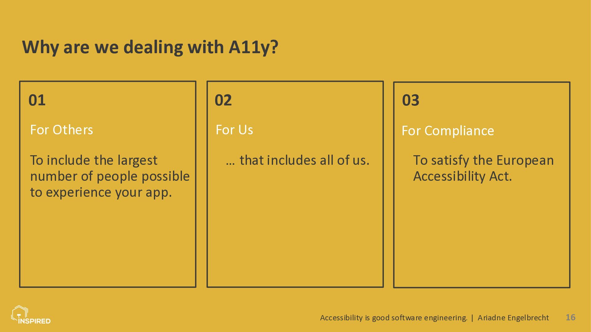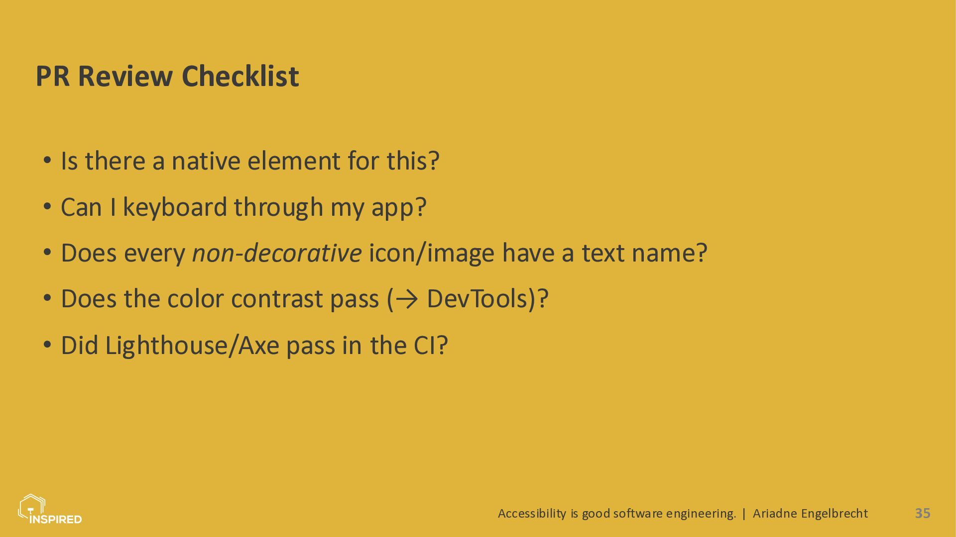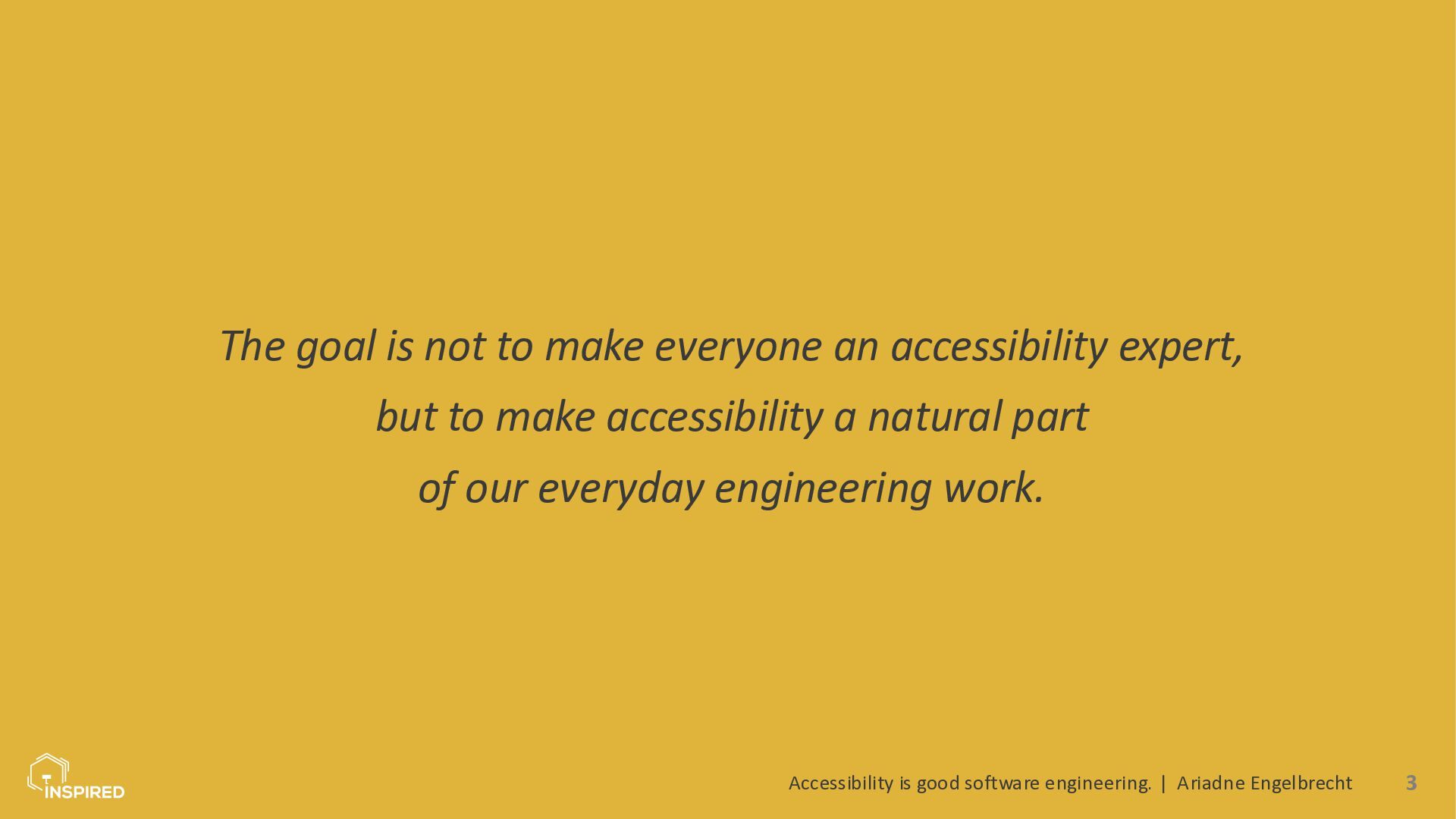 The goal is not to make everyone an accessibility expert, but to make accessibility a natural part of our everyday engineering work.