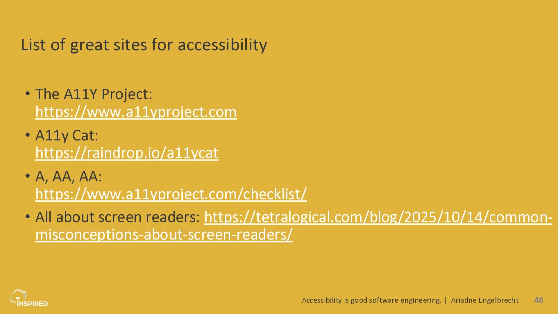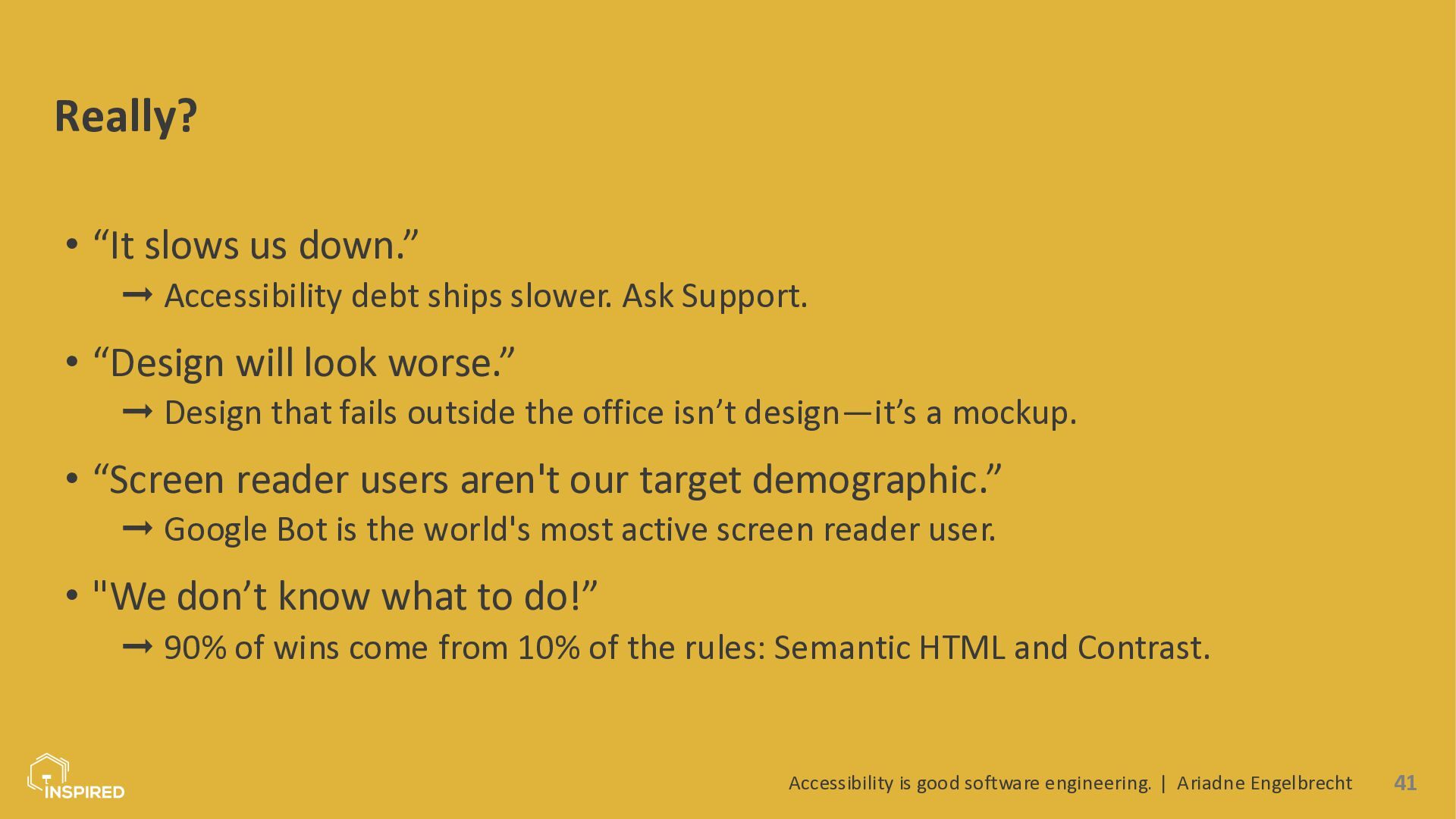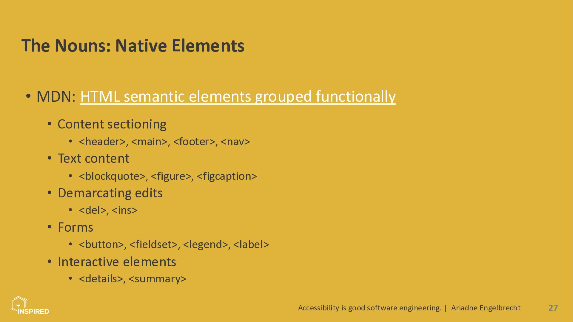 Accessibility is often treated as a mere compliance checkbox or something the “UI people” worry about at the end of a project. In reality, accessibility is a core quality attribute of software systems, and many of the biggest wins come from small decisions developers make every day: how we structure HTML, name components, log errors, design APIs, or write tests.