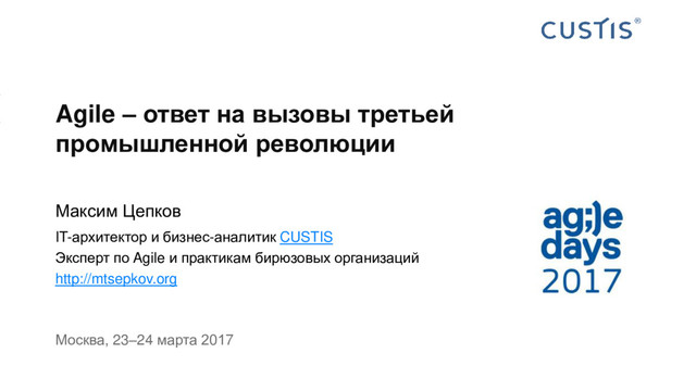 систем (более 20 лет) Знание практик операционного управления и ведения проектов в крупных коммерческих и государственных организациях и банках Опыт управления проектами в IT: от классического подхода (PMBOK) – к современным Agile-методам (с 2007) Опыт перестройки процессов организаций при внедрении систем Сопоставление различных подходов управления Agile и классический менеджмент (ряд статей и выступлений) Модель развития Спиральной динамики (с 2013) Практики бирюзовых организаций от Фредерика Лалу и холакратия СМД-методология, развитие СРТ в третьей промышленной революции 2/49