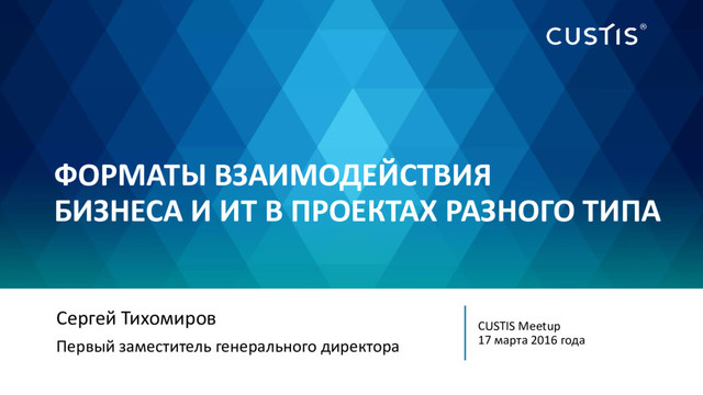 Выступление Сергея Тихомирова, нашего первого заместителя генерального директора, на профессиональной встрече CUSTIS Meetup: Управление ИТ-проектами в банках (17 марта 2016 года, Москва).