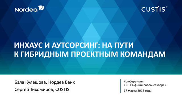 Совместное выступление Бэлы Кулешовой, начальника департамента банковских технологий и программного обеспечения Нордеа Банка, и Сергея Тихомирова, нашего первого заместителя генерального директора, на конференции «ИКТ в финансовом секторе» (17 марта 2016 года, Москва).