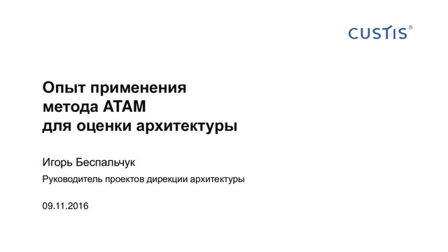 того, как сам наступил на грабли) В том числе вдаваться в детали, читать книги, учиться, потому что поверхностного понимания может не хватить для результата Оценка архитектуры — необходимый хотя бы в малом объеме элемент процесса проектирования (если вообще применяется архитектурный подход) ATAM во многих аспектах лучше «самоделки» CUSTIS (с другими технологиями и методологиями обычно происходит то же самое) Хотя это, конечно, не панацея и не серебряная пуля, никакого волшебства. И не покрывает всех аспектов В чистом виде ATAM (как любой метод) малоприменим (тяжеловат) Но если подойти с пониманием, разобрать и пересобрать под ситуацию конкретного проекта, то принесет большой и приемлемый по затратам (окупаемый вдолгую) профит