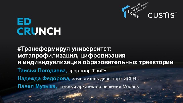 Совместное выступление Павла Музыки, нашего архитектора решений, и представителей Тюменского государственного университета Таисьи Погодаевой и Надежды Федоровой на конференции EdCrunch (Москва, 2 октября 2018).