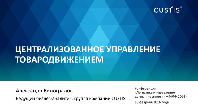 Выступление Александра Виноградова, нашего ведущего бизнес-аналитика, на конференции «Логистика и управление цепями поставок» в рамках Московского международного логистического форума (18 февраля 2016 года, Москва).