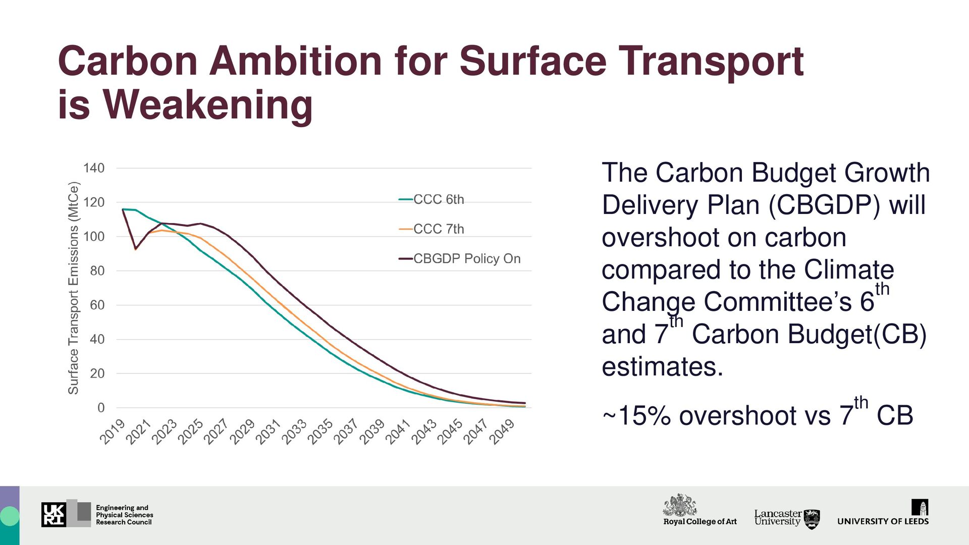 Growth Delivery Plan (CBGDP) will overshoot on carbon compared to the Climate Change Committee’s 6th and 7th Carbon Budget(CB) estimates. ~15% overshoot vs 7th CB