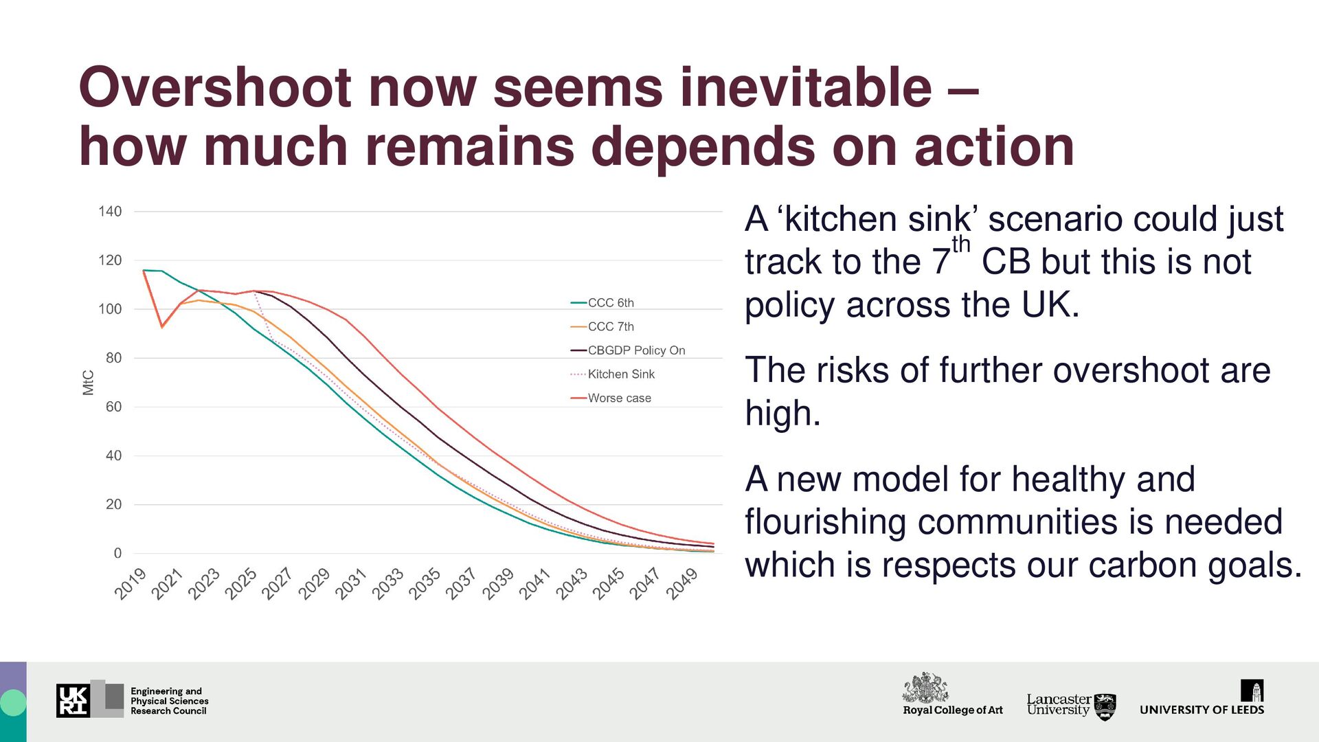 CB but this is not policy across the UK. The risks of further overshoot are high. A new model for healthy and flourishing communities is needed which is respects our carbon goals. Overshoot now seems inevitable – how much remains depends on action
