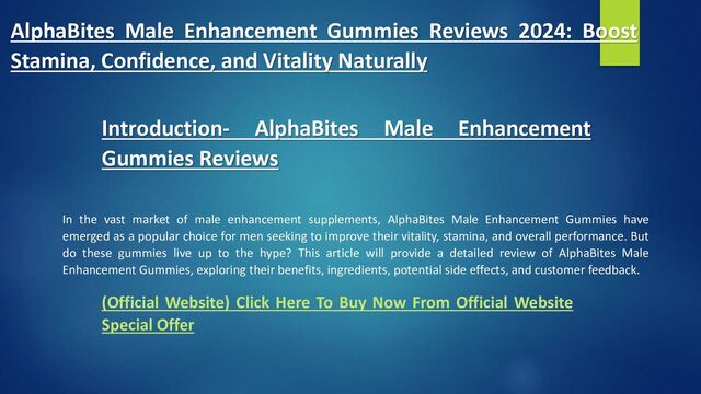 In the vast market of male enhancement supplements, AlphaBites Male Enhancement Gummies have emerged as a popular choice for men seeking to improve their vitality, stamina, and overall performance. But do these gummies live up to the hype? This article will provide a detailed review of AlphaBites Male Enhancement Gummies, exploring their benefits, ingredients, potential side effects, and customer feedback.
