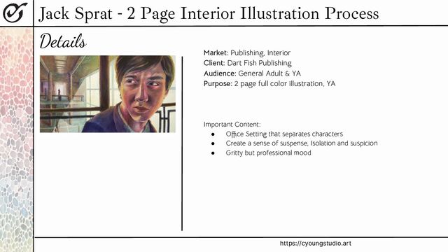 This is an example of my process for a 2 page spread, interior illustration.