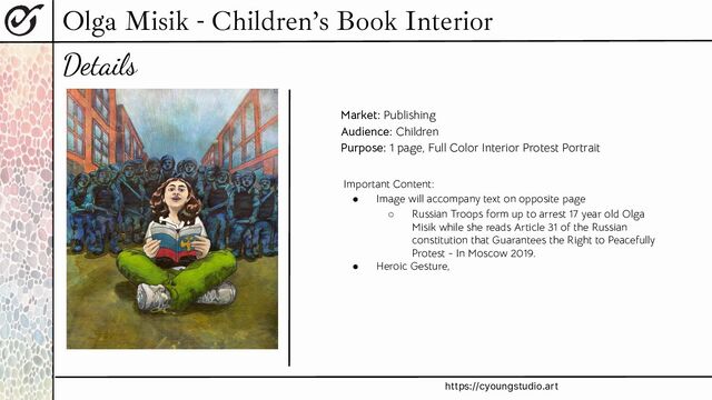 Subject: Image to accompany a story about Olga Misik, Russian girl who halted police by reading the constitution. Part of an anthology of peaceful child protesters.