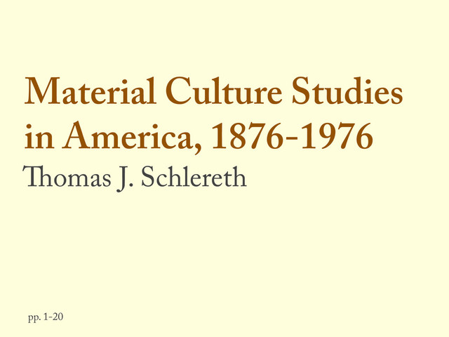 Material Culture Studies in America, 1876-1976 Thomas J. Schlereth pp.