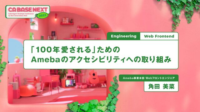 Amebaでは「100年愛されるメディアを創る」をVisionに掲げ,誰もがいつでも,迷わず「書く」「読む」「応える」ができるサービスを目指して日々アクセシビリティ向上に取り組んでいます。 本セッションでは,Amebaブログにアクセシビリティを定着させるために行ってきた取り組みや,直近行ってきたアクセシビリティ改善の内容についてお話しさせていただきます。