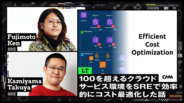 そんなCAMの特性に対して、SREでどのように全クラウドサービス環境を効率的にコスト最適化しているかの仕組みと手法についてお話させていただきます。