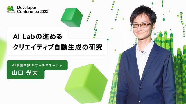 CyberAgent AI Labではバナーや動画広告といったクリエイティブを自動生成するための研究開発に取り組み、極AIのようなサービスを通して事業成長につなげてまいりました。この発表ではベクターグラフィック形式のドキュメントの自動生成する手法、画像に描画済みのテキストを再編集可能にする手法、最適化による制約を満たしたレイアウトを生成する手法など、難関国際会議に採択された最新のクリエイティブ生成に関する研究成果を紹介しつつ、技術を用いた新しいクリエイティブ制作のワークフローについてお話しします。