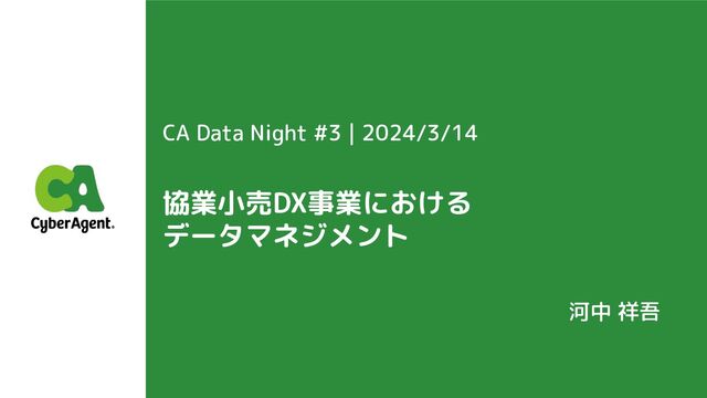 サイバーエージェントではメディア・広告・ゲーム事業に次ぐ第4の柱の事業を目指してDX事業に注力しています。アプリ運用カンパニーでは、パートナー企業様と共に公式アプリやEC開発を行った上で、アプリ内行動データや購買データを掛け合わせアプリのグロースやアプリ販促施策の提案から実施・評価・改善まで一気通貫で実施しております。そういったアプリグロースに向けた分析を実施する中では、小売様が保有される購買データからアプリ会員データやアプリ内行動ログを始めとした様々なデータソースから収集されるデータを統合的に管理する必要があります。それらを用いた社内でも様々な分析ニーズがある中で必要となるデータマネジメントについてお話いたします。