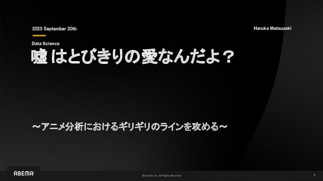 1 嘘 はとびきりの愛なんだよ? 2023 September 20th 〜アニメ分析におけるギリギリのラインを攻める〜 Haruka Matsuzaki Data Science
