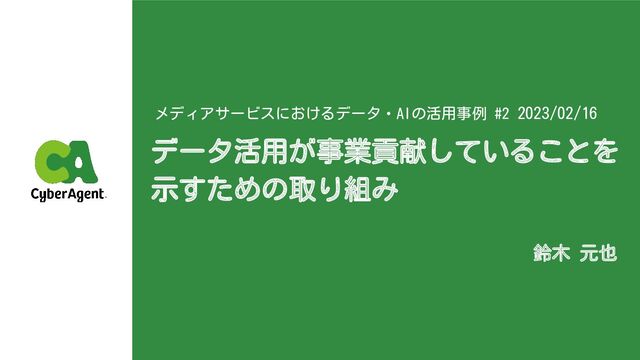 2023年2月16日開催、サイバーエージェント メディア事業部主催のデータ活用に関する勉強会「メディアサービスにおけるデータ・AIの活用事例 #2」登壇資料です。 https://cyberagent.connpass.com/event/270224/