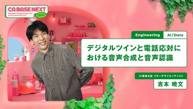 Digital Twin Label ではデジタルツインの声として音声合成が使われています。その音声合成を高品質に実現するためには,高品質な学習データを用意する必要があります。その高品質なデータを作るためには人手作業が発生しがちですが,そのコストを減らすために音声認識手法を様々に活用しており,その活用法について紹介します。また,株式会社AI Shiftと共に『AI Messenger Voicebot』の音声認識手法を作っていますが,電話応対で聞き取らねばならないパターンのうち,数値表現を認識させるための工夫を紹介します。