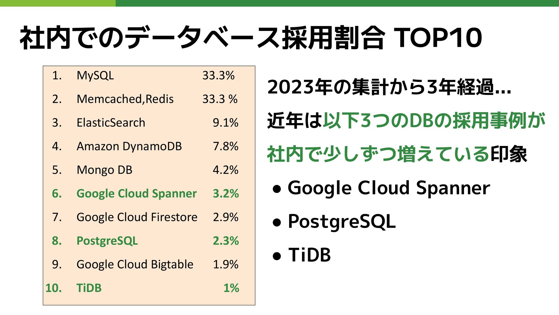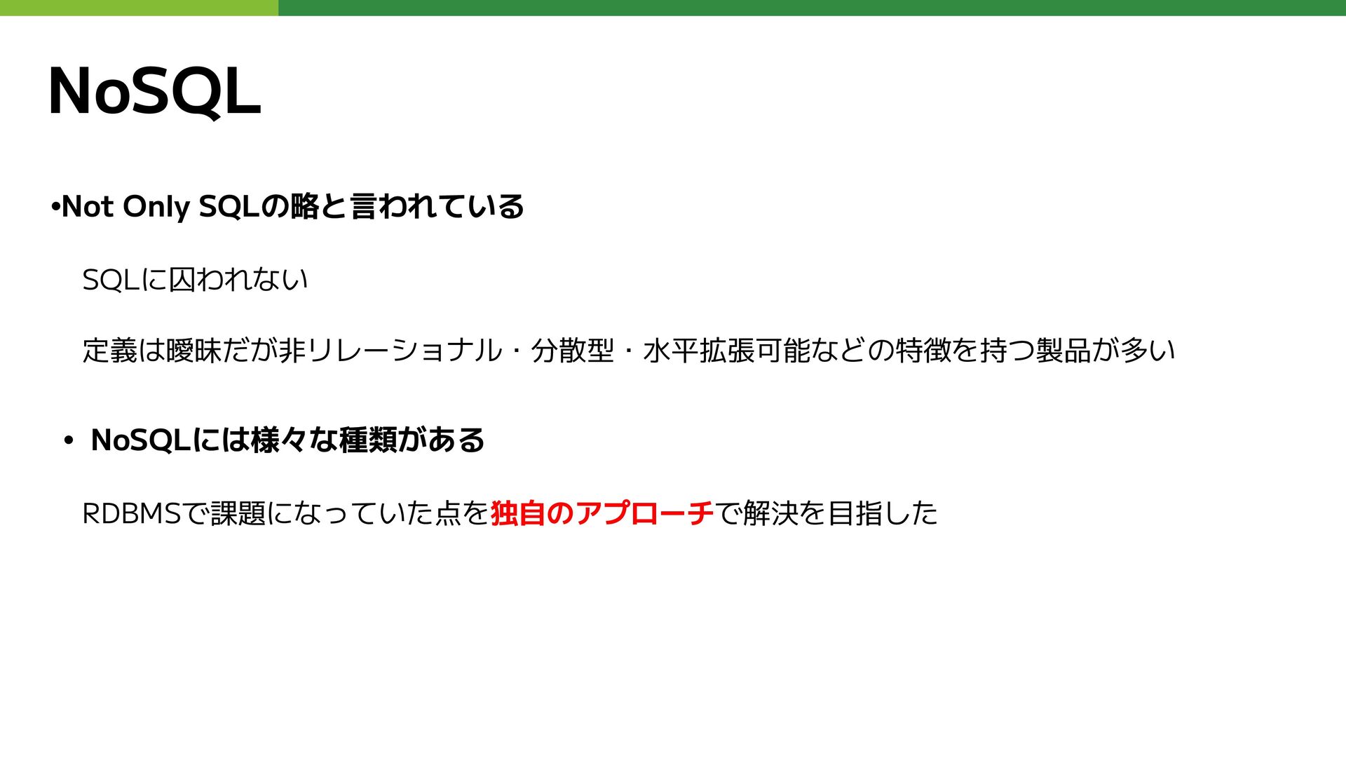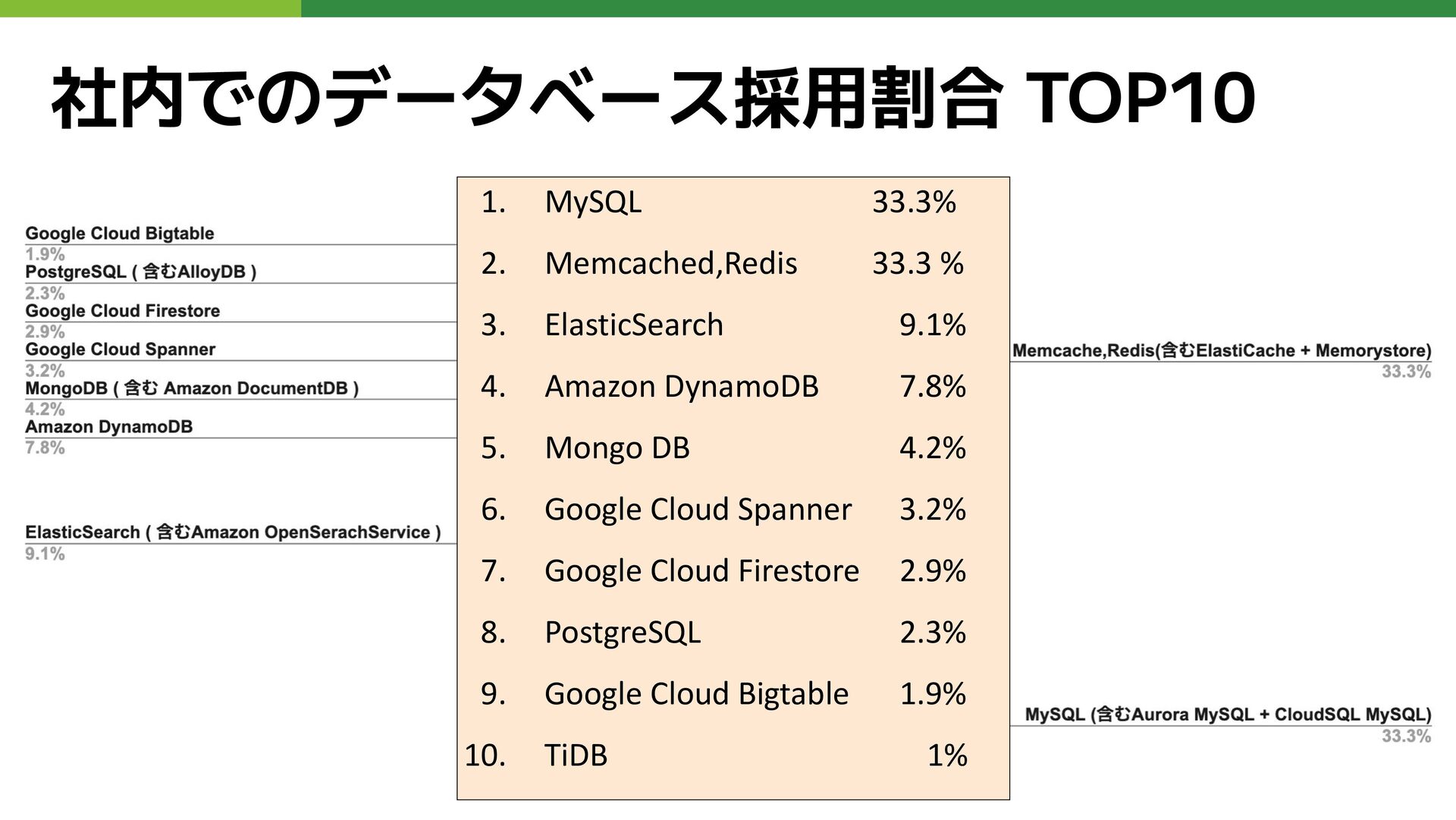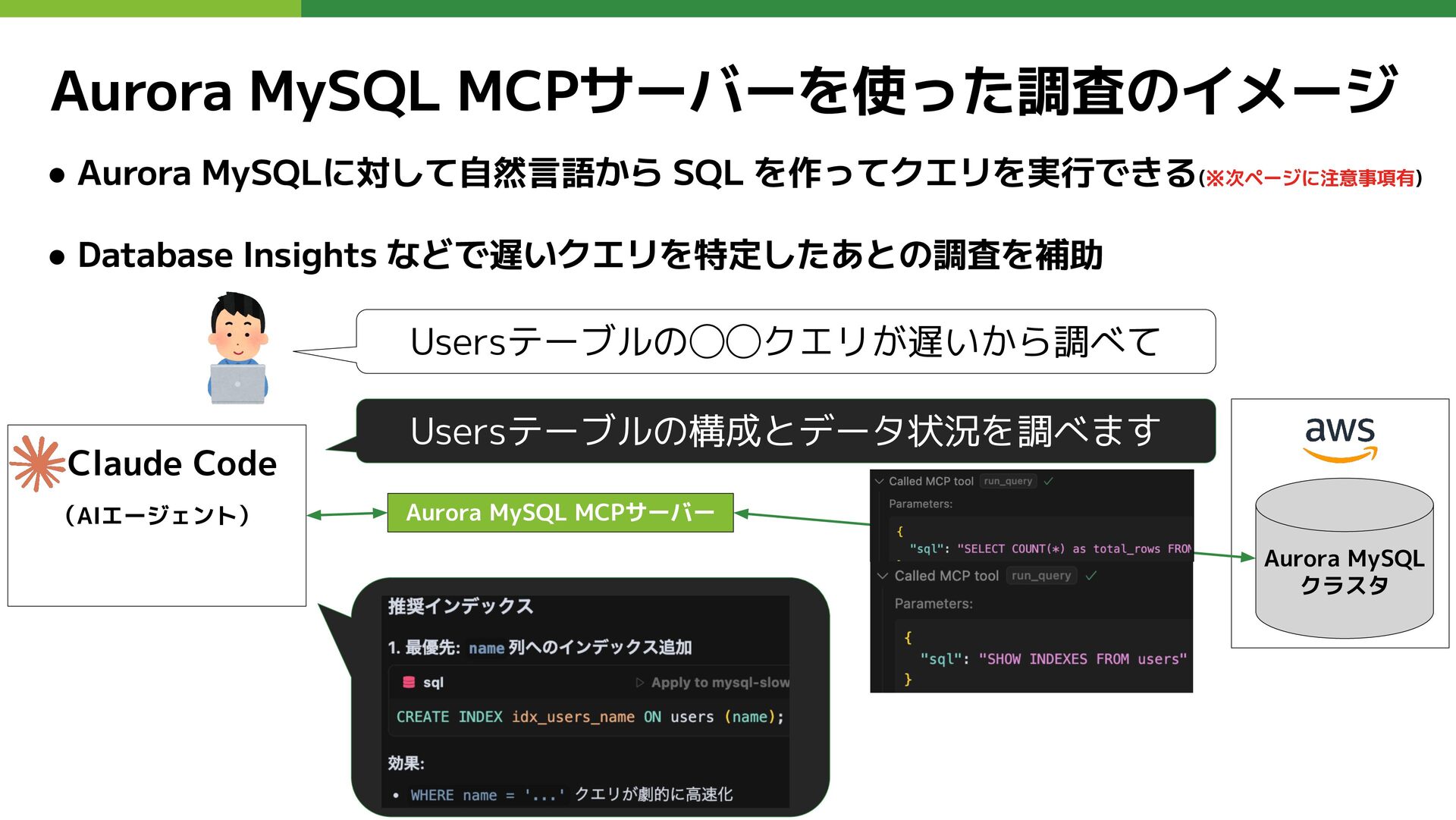 const PRIMARYまたはUNIQUEインデックスを使い一致するレコード数が最大1行の場合(等価検索) eq_ref PRIMARYまたはUNIQUEインデックスを使いJOINしている場合 ref PRIMARYまたはUNIQUEインデックス ではない 等価検索やJOIN fulltext 全文検索インデックスを使っている場合 ref_or_null PRIMARYまたはUNIQUEインデックス ではない 等価検索にOR条件でNULL値の検索した場合 index_merge 複数のインデックスをマージしている場合 unique_subquery サブクエリ内でPRIMARYまたはUNIQUEインデックスを使い等価検索をしている場合 index_subquery サブクエリ内でPRIMARYまたはUNIQUEインデックス ではない 等価検索をしている場合 range インデックスを使用した範囲検索( WHERE <>, >, >=, <, <=や BETWEENやIN )の場合 index インデックスフルスキャン もしくはカバリングインデックスの場合 ALL インデックス不使用のフルテーブルスキャン https://dev.mysql.com/doc/refman/8.0/ja/explain-output.html#explain-join-types 遅い可能性 高速