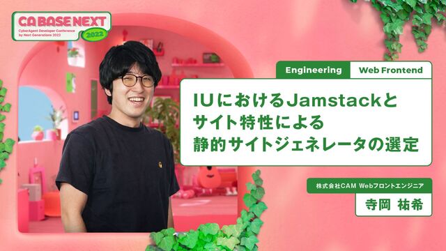 サイバーエージェントグループの株式会社CAM,株式会社タップルを含めたサイバーエージェントグループ10社からなる組織IUでは,Jamstack構成を採用してこれまでに多数のサービス開発,運用に取り組んできました。様々な静的サイトジェネレーターやHeadless CMS,SaaSがある中で,IUでは株式会社CAMが開発運用しているFensi Platformを活用して事業に取り組んでいます。静的サイトジェネレータや各種のシステムをどう活用して私たちがサービスを作成しているか。その知見と今後の展望についてお伝えしていきます。